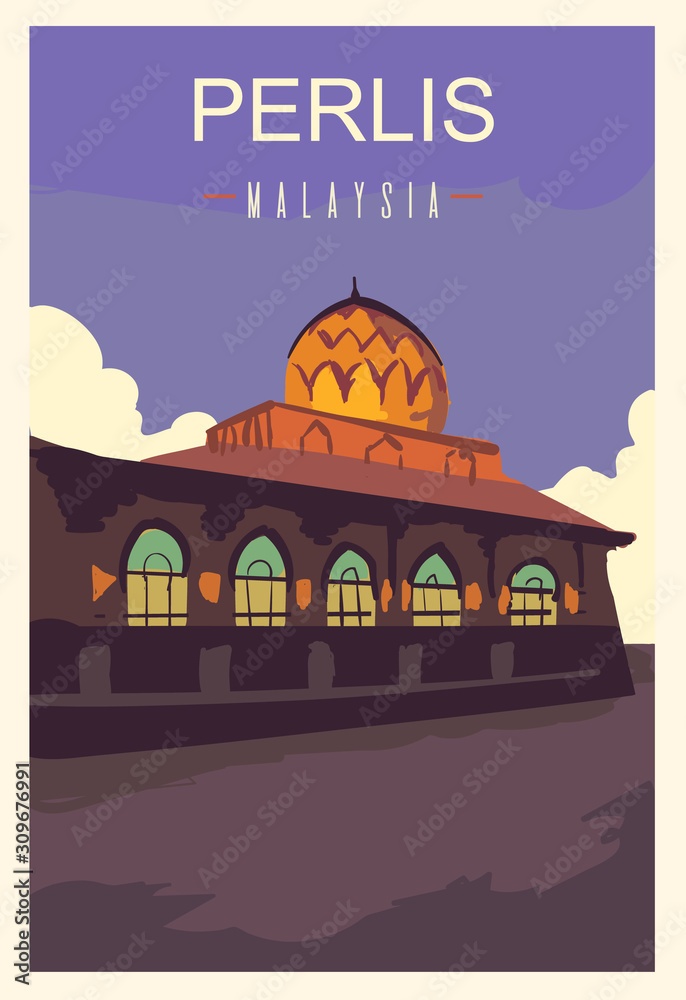 Perlis Retro Poster Perlis Travel Illustration States Of Malaysia Stock Vector Adobe Stock